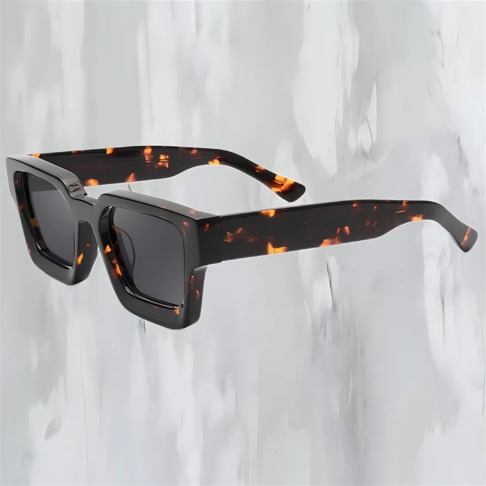 Lad ikke et øjebliks ventetid blive en livslang fortrydelse! Vælg vores firkantede acetatsolbriller til mænd nu og nyd et modeliv af høj kvalitet!